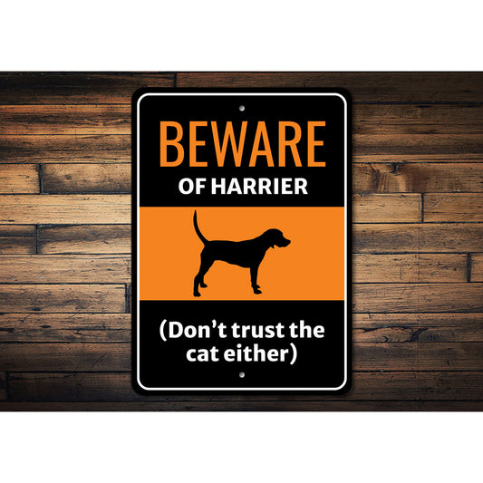 Beware Of Harrier Dog Don't Trust The Cat Either Sign