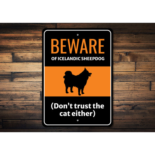 Beware Of Icelandic Sheepdog Dog Don't Trust The Cat Either Sign