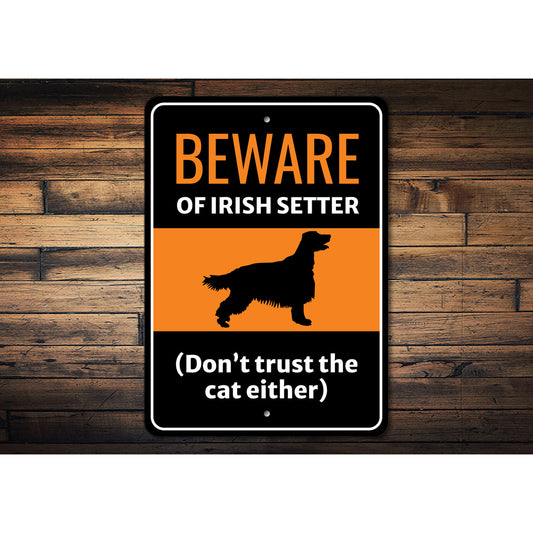 Beware Of Irish Setter Dog Don't Trust The Cat Either Sign
