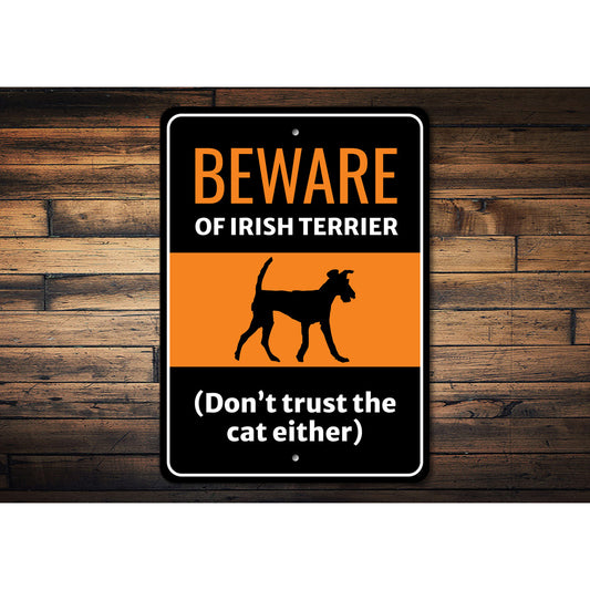 Beware Of Irish Terrier Dog Don't Trust The Cat Either Sign