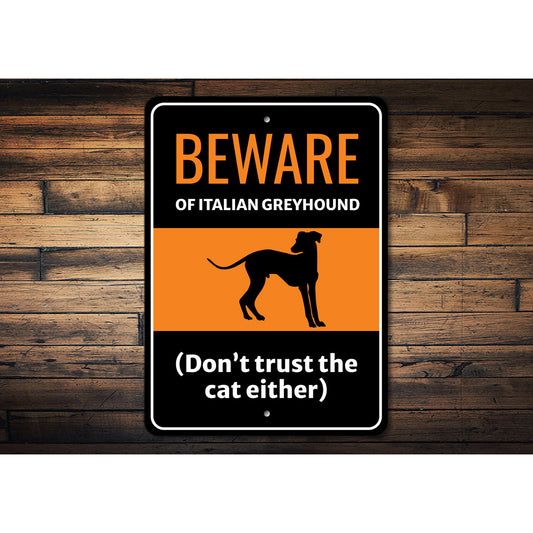 Beware Of Italian Greyhound Dog Don't Trust The Cat Either Sign