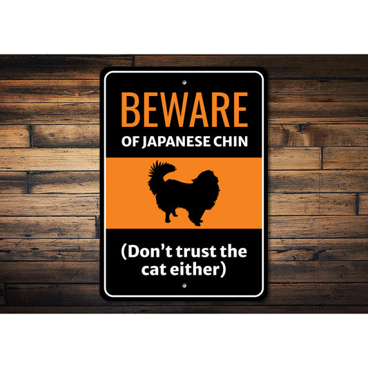 Beware Of Japanese Chin Dog Don't Trust The Cat Either Sign