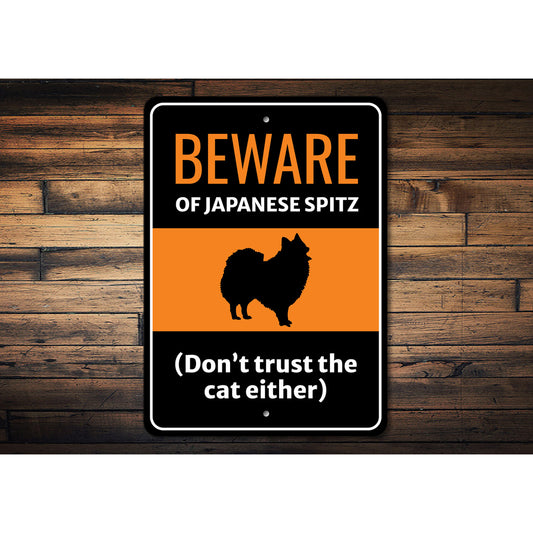 Beware Of Japanese Spitz Dog Don't Trust The Cat Either Sign