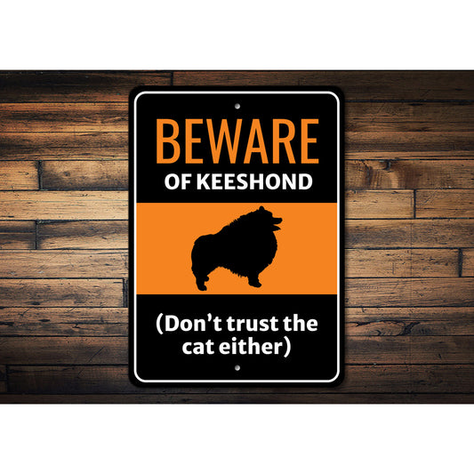 Beware Of Keeshond Dog Don't Trust The Cat Either Sign