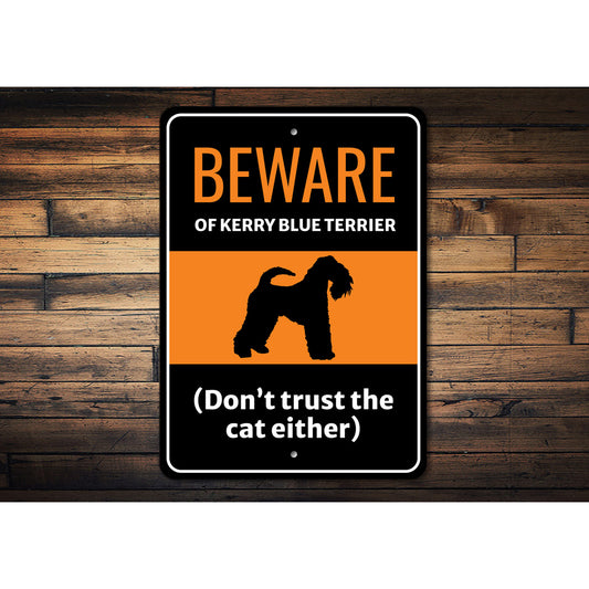 Beware Of Kerry Blue Terrier Dog Don't Trust The Cat Either Sign