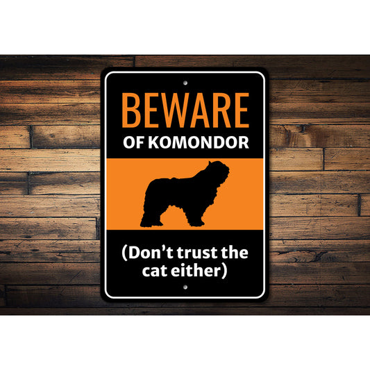 Beware Of Komondor Dog Don't Trust The Cat Either Sign