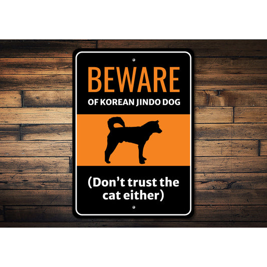Beware Of Korean Jindo Dog Don't Trust The Cat Either Sign