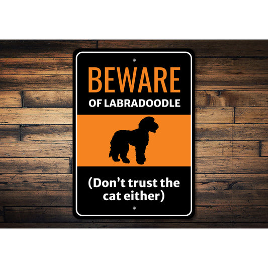 Beware Of Labradoodle Dog Don't Trust The Cat Either Sign