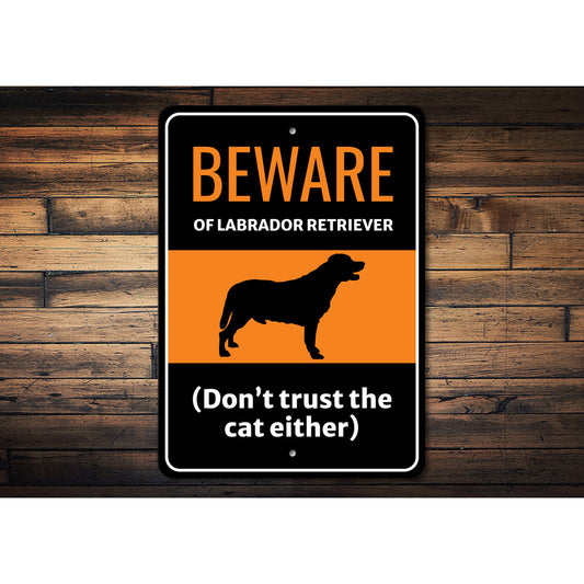 Beware Of Labrador Retriever Dog Don't Trust The Cat Either Sign