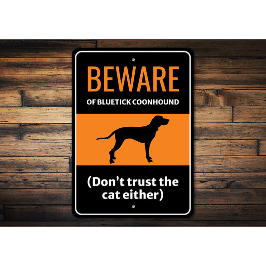 Beware Of Bluetick Coonhound Dog Don't Trust The Cat Either Sign