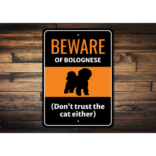 Beware Of Bolognese Dog Don't Trust The Cat Either Sign