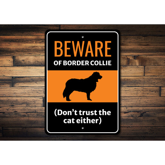 Beware Of Border Collie Dog Don't Trust The Cat Either Sign