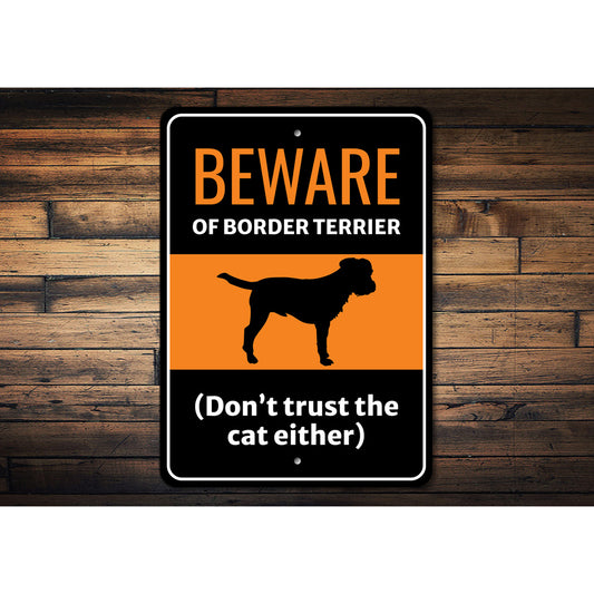 Beware Of Border Terrier Dog Don't Trust The Cat Either Sign