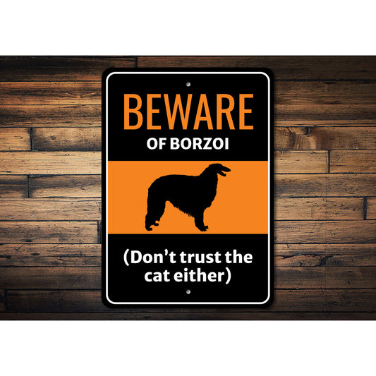 Beware Of Borzoi Dog Don't Trust The Cat Either Sign