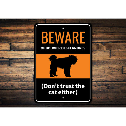 Beware Of Bouvier des Flandres Dog Don't Trust The Cat Either Sign