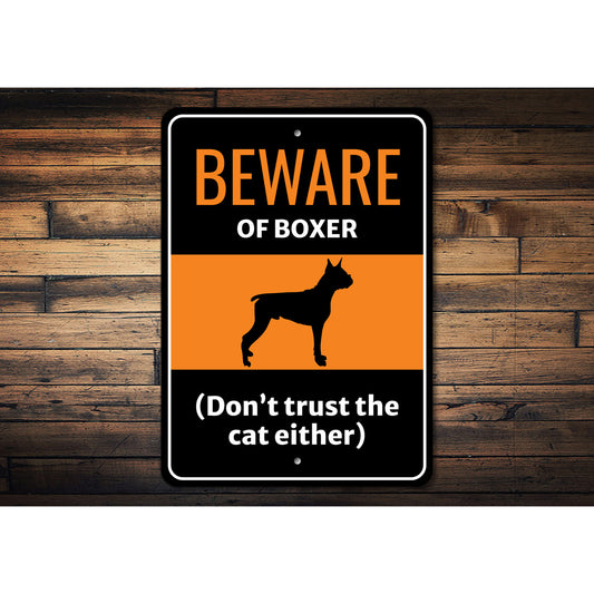 Beware Of Boxer Dog Don't Trust The Cat Either Sign