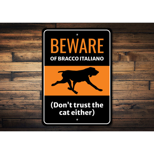 Beware Of Bracco Italiano Dog Don't Trust The Cat Either Sign