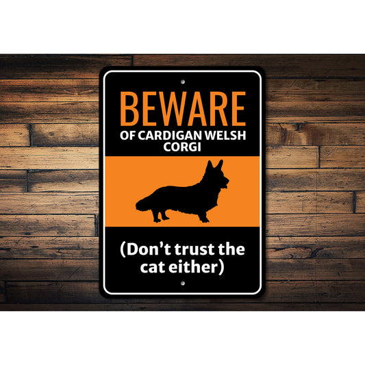 Beware Of Cardigan Welsh Corgi Dog Don't Trust The Cat Either Sign