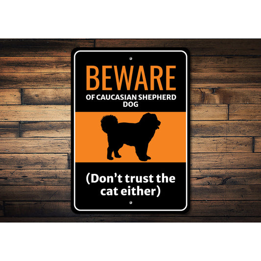 Beware Of Caucasian Shepherd Dog Don't Trust The Cat Either Sign
