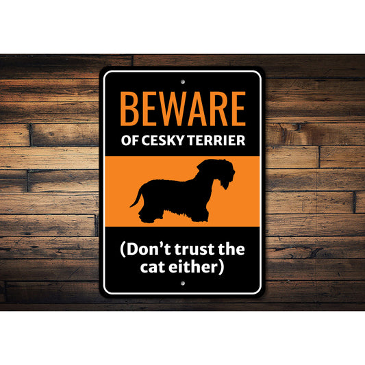 Beware Of Cesky Terrier Dog Don't Trust The Cat Either Sign