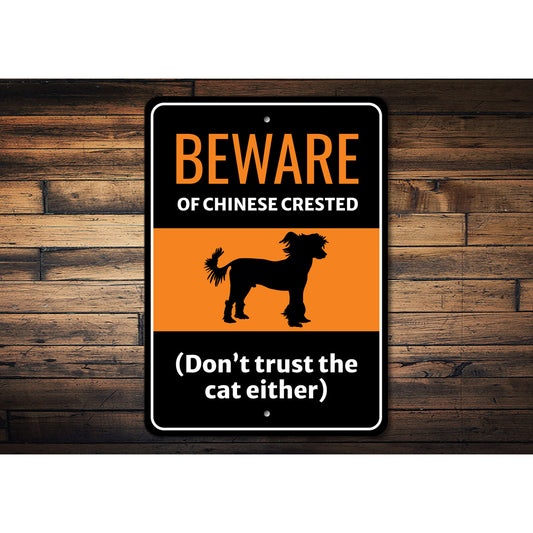 Beware Of Chinese Crested Dog Don't Trust The Cat Either Sign