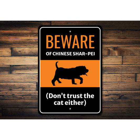 Beware Of Chinese Shar Pei Dog Don't Trust The Cat Either Sign