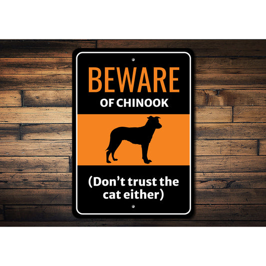 Beware Of Chinook Dog Don't Trust The Cat Either Sign