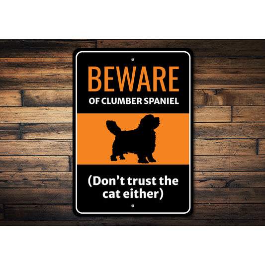 Beware Of Clumber Spaniel Dog Don't Trust The Cat Either Sign