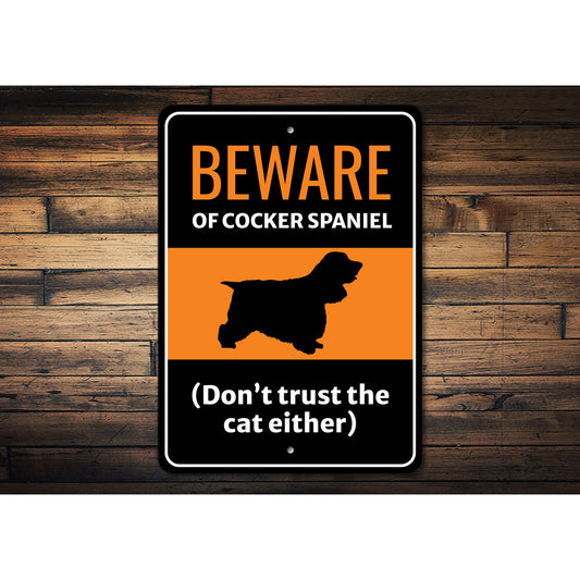 Beware Of Cocker Spaniel Dog Don't Trust The Cat Either Sign
