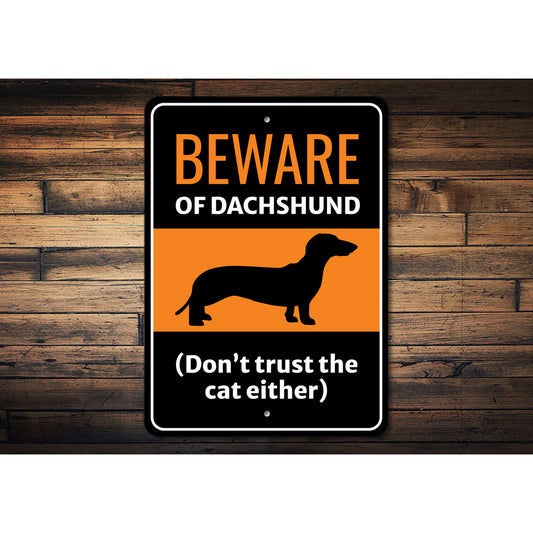 Beware Of Dachshund Dog Don't Trust The Cat Either Sign