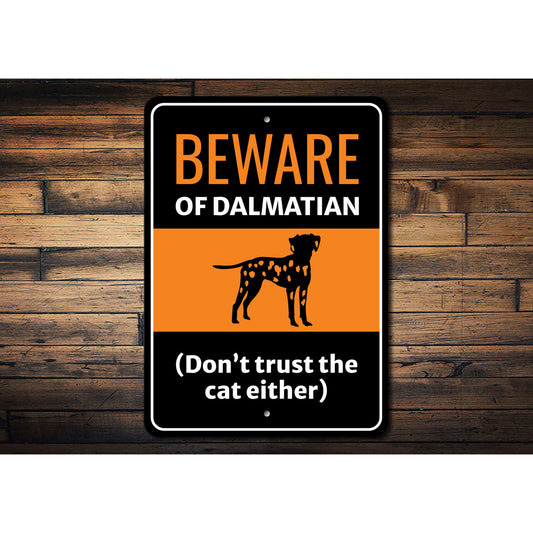 Beware Of Dalmatian Dog Don't Trust The Cat Either Sign