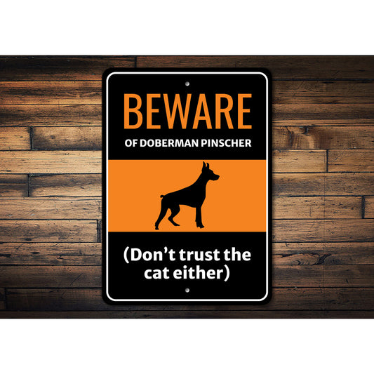 Beware Of Doberman Pinscher Dog Don't Trust The Cat Either Sign