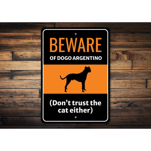 Beware Of Dogo Argentino Dog Don't Trust The Cat Either Sign