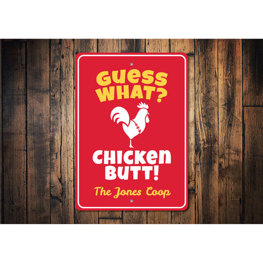 Chicken Butt Joke Metal Sign