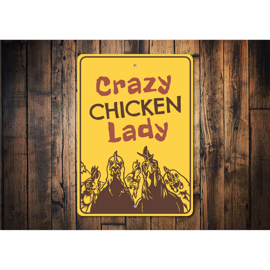 Crazy Chicken Lady Metal Sign