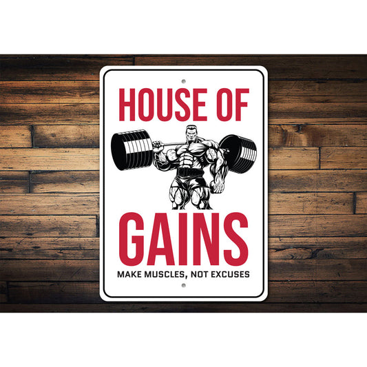 House Of Gains Make Muscles Not Excuses Gym Sign