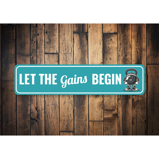 Let The Gains Begin Kettle Bell Exercise Gym Sign
