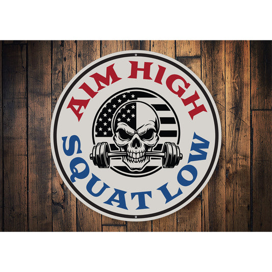 Aim High Squat Low Exercise Weights Sign