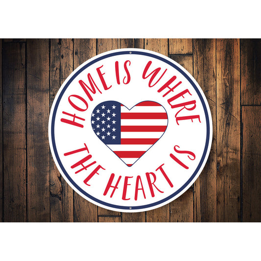 American Flag Heart Metal Sign