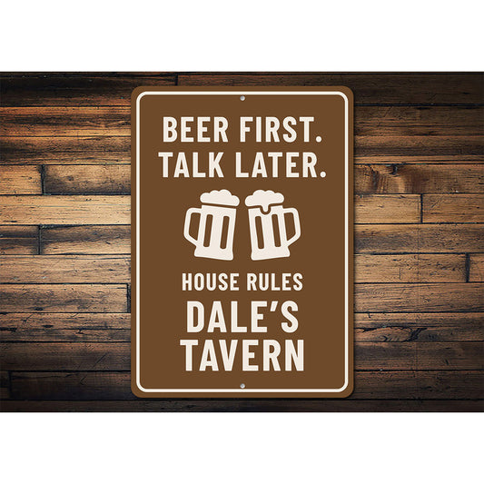 Beer First Talk Later House Rules Custom Tavern Sign