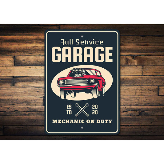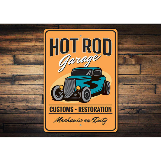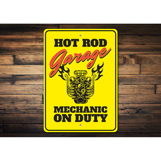 Hot Rod Garage Mechanic on Duty Metal Sign