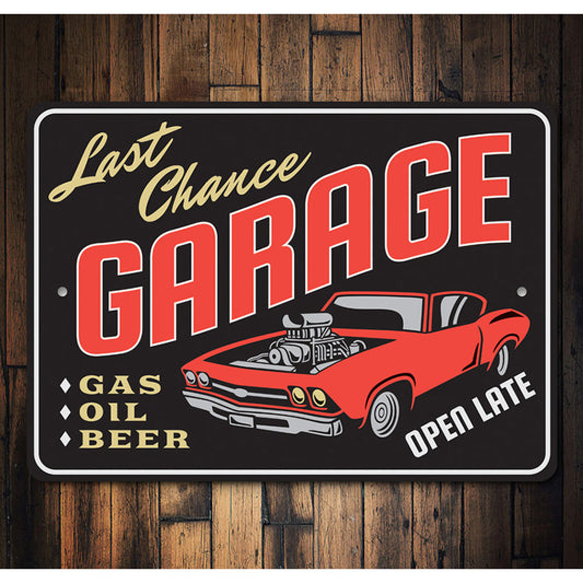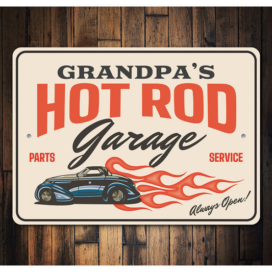 Hot Rod Garage Always Open Parts and Service Metal Sign