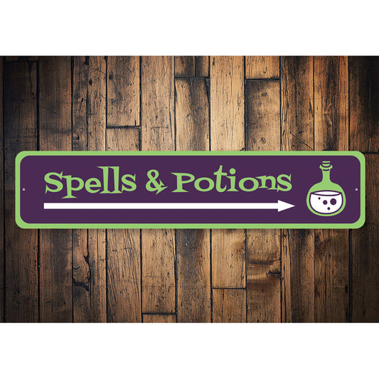 Spells and Potions Arrow Metal Sign