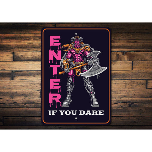Enter If You Dare Halloween Axe Sign
