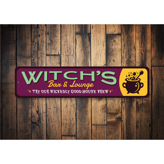 Witch's Bar And Lounge Try Our House Brew Halloween Sign