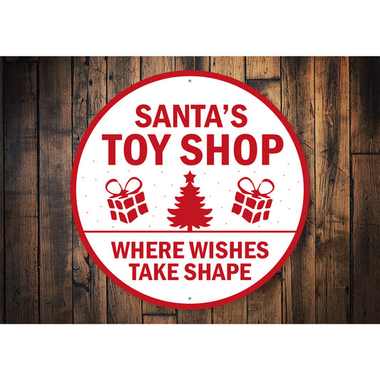 Santa's Toy Shop Where Wishes Take Shape Sign