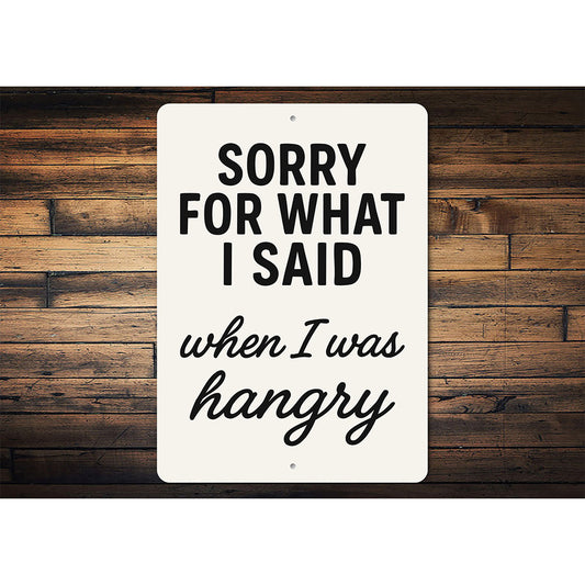 Funny Sorry for What I Said When I Was Hangry Aluminum Sign