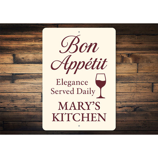 Bon Appetit Elegance Served Daily Personalized Kitchen Sign