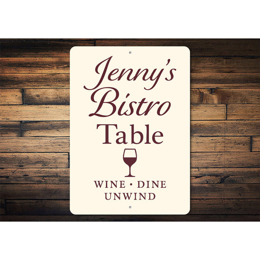 Personalized Bistro Table Sign Wine Dine Unwind Metal Decor