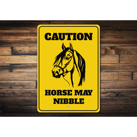 Caution Horse May Nibble Metal Sign